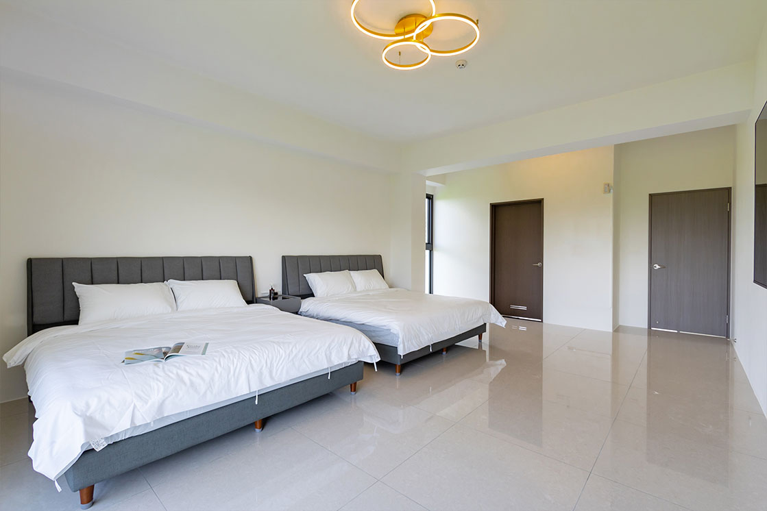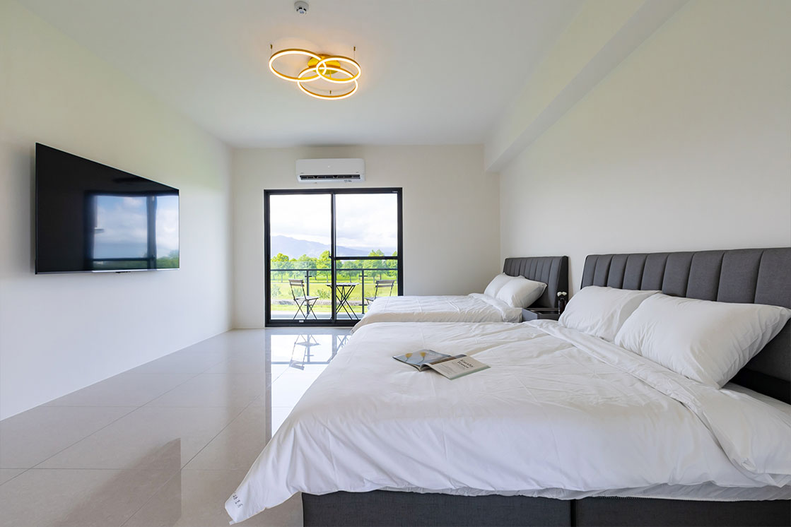 四間舒適四人套房,擁有大面窗景與戶外陽台,正對安農溪畔及整排的落羽松群,飽覽這大片靜謐美景。